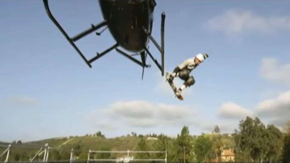 Esportes Bob Burnquist salta de helicóptero com skate Exibir comentários Compartilhar Skatista brasileiro usou um helicóptero de pequeno porte para pular em um half-pipe Terra Publicidade