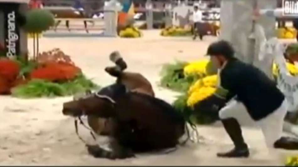 Esportes Cavalo campeão olímpico morre em prova na Itália Exibir comentários Compartilhar O cavalo Hickstead, montado por Eric Lamaze, atual nº1 do mundo, sofreu um colapso e morreu antes de ser atendido Reprodução Publicidade