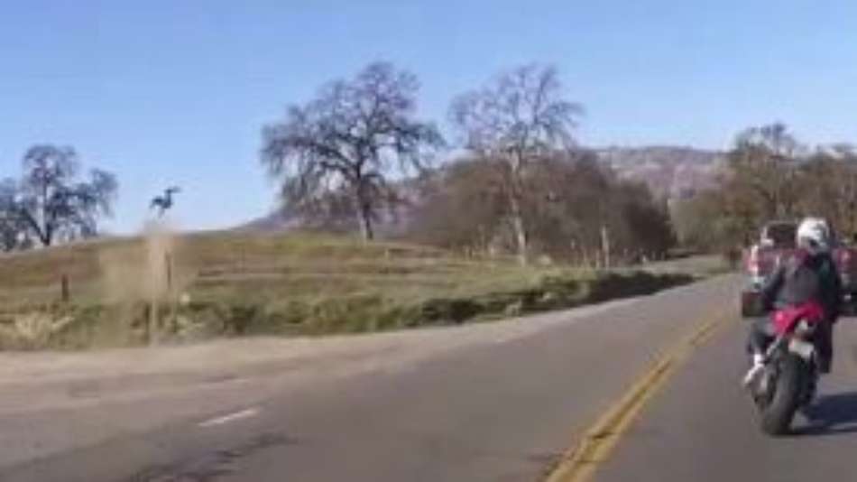 Esportes Cena forte: motociclista grava amigo "voando" após acidente Exibir comentários Compartilhar Amigos viajavam pela estrada quando para evitar colidir de frente com um carro, motociclista desviou e bateu em um banco de terra e foi ejetado de sua moto Reprodução Publicidade