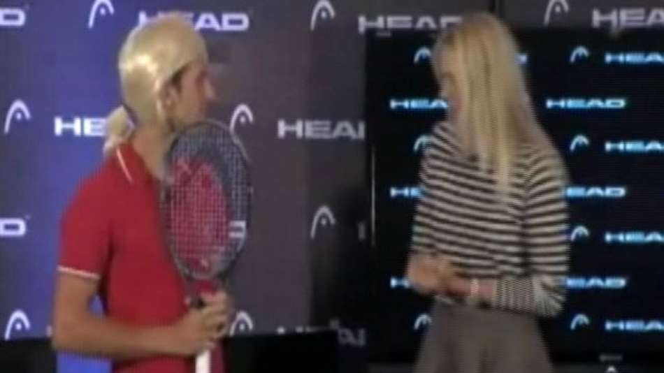 Esportes Djokovic imita Sharapova e acaba levando "bronca" Exibir comentários Compartilhar Depois do sucesso de sua primeira imitação, o sérvio voltou a incorporar a tenista russa em uma ação comercial Reprodução Publicidade