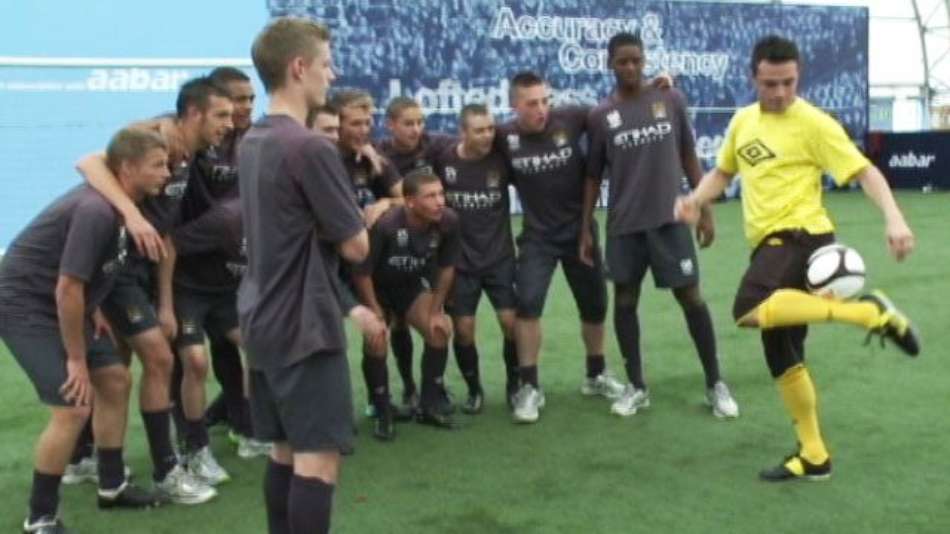 Esportes Falcão humilha jogadores do Manchester City com embaixadinhas Exibir comentários Compartilhar Jogador de futsal visitou a academia do time inglês e mostrou habilidade com a bola nos pés e na cabeça Reprodução Publicidade