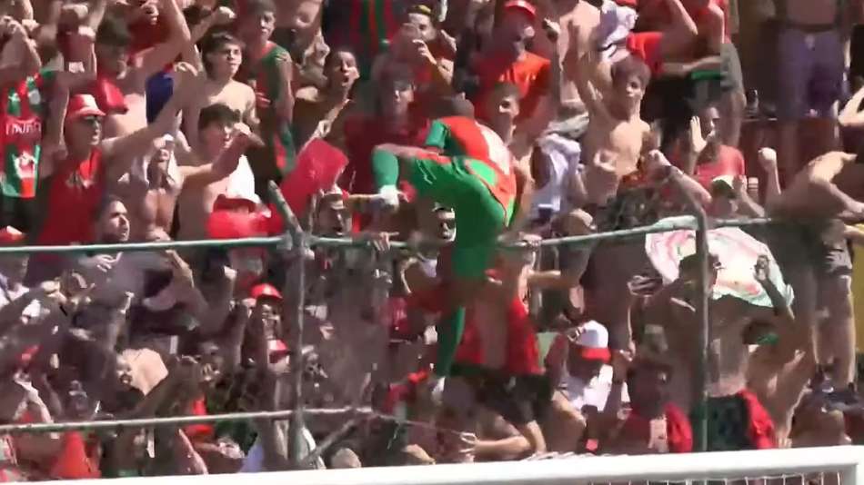 Jogador da Portuguesa comemora gol de título em alambrado, que não resiste cai. Caxito se empolgou e subiu na estrutura para celebrar o tento anotado contra o Marília neste domingo, 26. No entanto, com a aglomeração de torcedores, parte do alambrado do estádio Ulrico Mursa desabou na comemoração. Apesar do susto, não há informações sobre feridos; a Briosa conquistou o título do Paulista A3. Reprodução/Paulistão/Youtube