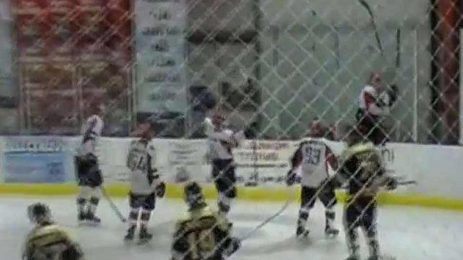 Esportes Jogador de hóquei quebra vidro e leva tombo cinematográfico Exibir comentários Compartilhar Taylor Cox, do time júnior do New Jersey Titans, foi comemorar o gol e destruiu o vidro da quadra; veja o tombo Reprodução Publicidade
