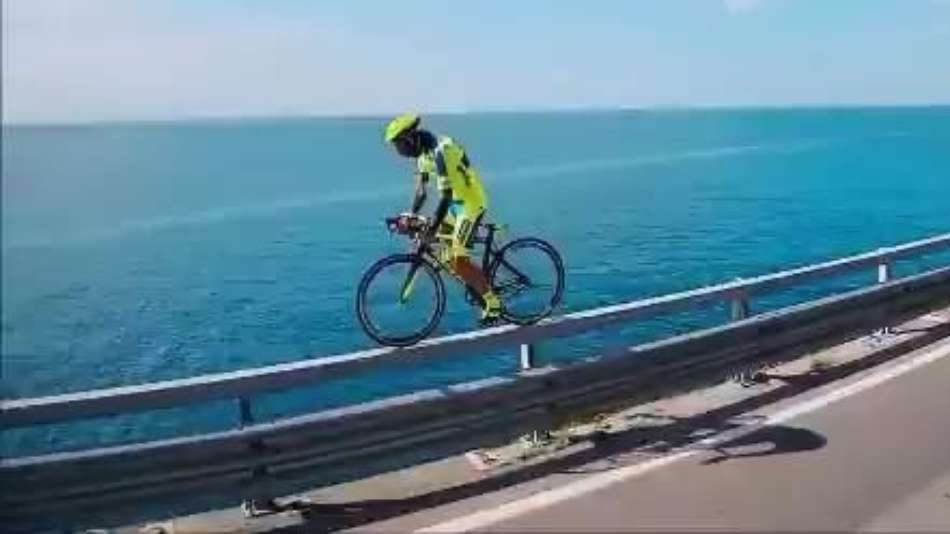 Esportes Le Parkour de bike! Ciclista faz manobras insanas na Itália Exibir comentários Compartilhar Ciclista Vittorio Brumotti fez manobras espetaculares em diversas paisagens italianas, além de se aventurar em empilhadeiras e até em uma asa de avião - imagens: GCN - Youtube Reprodução Publicidade