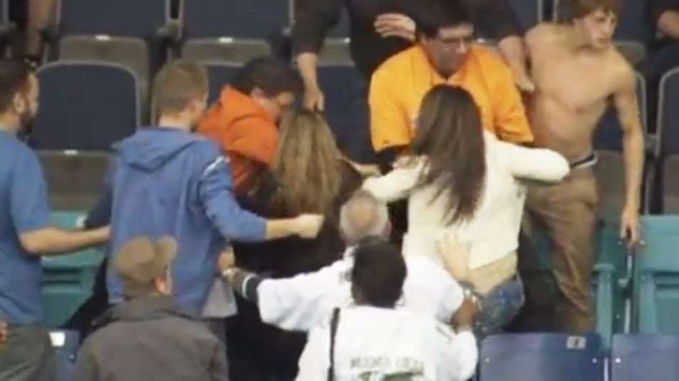 Esportes Mulher espanca torcedora durante jogo de lingerie Exibir comentários Compartilhar Briga envolvendo homens e mulheres se deu durante a partida da LFL entre Saskatoon Sirens e Regina Rage Terra Publicidade