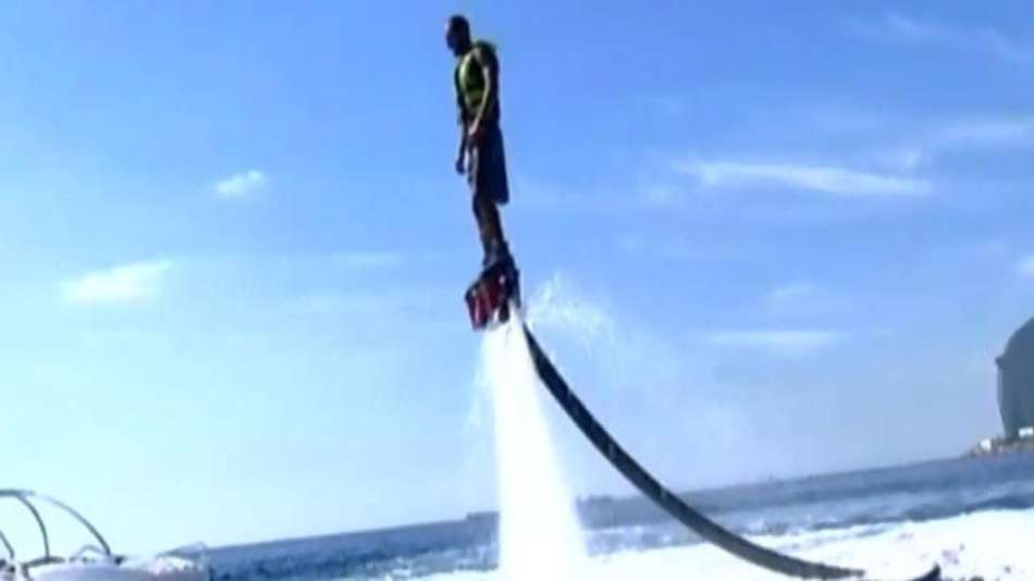 Esportes Novo esporte aquático invade as praias espanholas Exibir comentários Compartilhar O "Flyboard" utiliza a força de jatos d'água de uma lancha para impulsionar uma pessoa a até 2 metros de altura EFE Publicidade