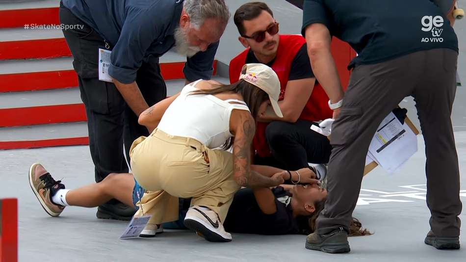 A 'fadinha' arriscou uma manobra difícil em um dos maiores corrimãos do percurso e acabou caindo. A queda ocorreu na última descida da final do Mundial de Skate Street, em São Paulo. A brasileira torceu o joelho e saiu da pista mancando; ela precisou ser amparada pela equipe. Ela terminou no 4º lugar na competição; pelos stories, ela tranquilizou os fãs.