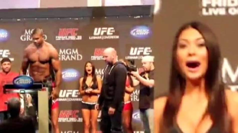 Esportes Ring girl do UFC não disfarça "desejo" por lutador; veja Exibir comentários Compartilhar Arianny Celeste, musa do UFC, ficou bastante admirada com a beleza do lutador Alistair Overeem Terra Publicidade