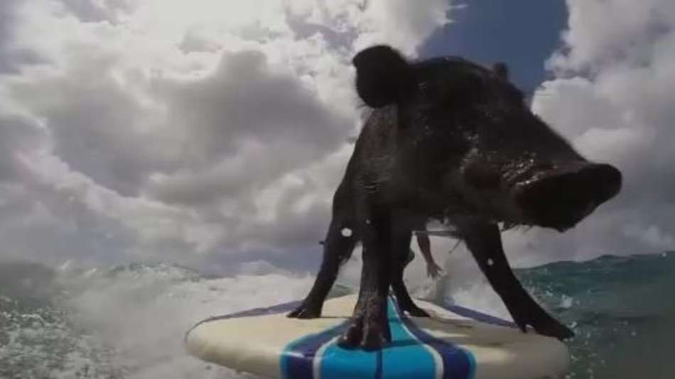 Esportes "Surfista", javali chama atenção em praia no Havaí Exibir comentários Compartilhar Animal de nome Kama é conhecido na praia de Sandy Beach por não ter medo de cair na água e surfar na mesma prancha que o dono Kai Holt Reprodução Publicidade