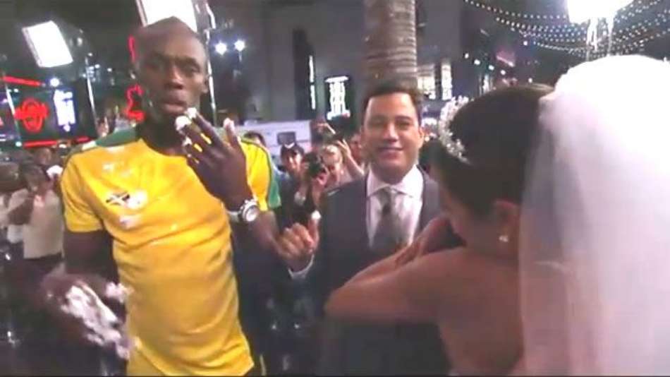Esportes Usain Bolt paga "mico" e perde corrida para apresentador de TV Exibir comentários Compartilhar Com um bolo de casamento na mão, velocista "toma baile" em programa nos EUA Reprodução Publicidade