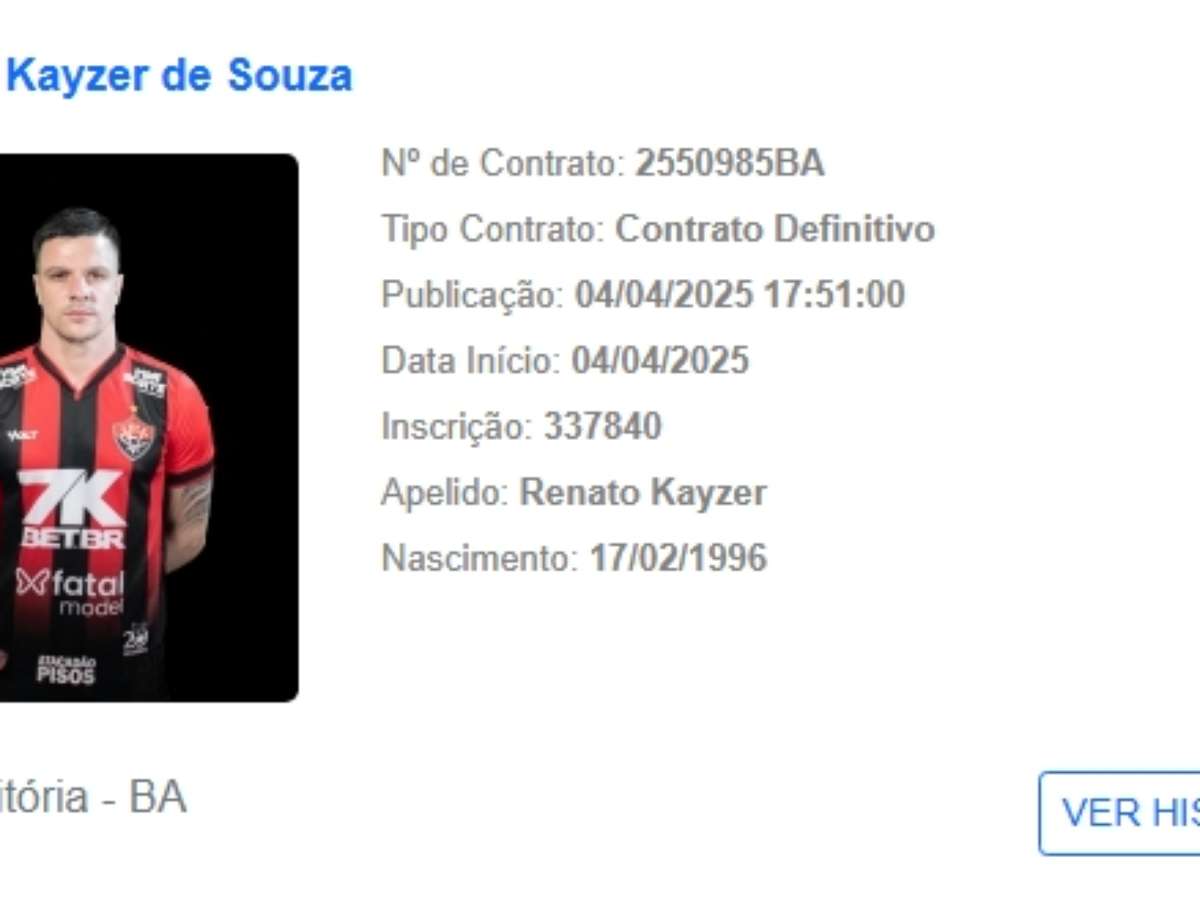 Renato Kayzer foi registrado pelo Vitória no Boletim Informativo Diário (BID) da CBF na sexta-feira (4). Na parte burocrática, o atacante já está liberado, entretanto, não deve estrear neste fim de semana, quando o Leão enfrenta o Flamengo, pelo Campeonato Brasileiro.