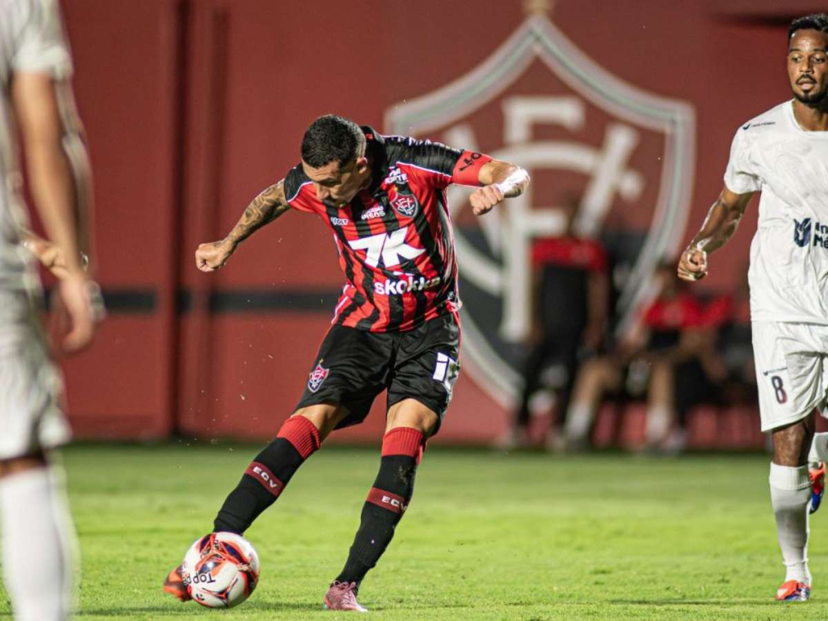 Jogando em casa, o Vitória assumiu o controle da partida desde os primeiros minutos. Logo aos três, Renato Kayzer subiu mais alto que a defesa e obrigou o goleiro Alan a trabalhar em dois tempos após cabeceio perigoso. A postura ofensiva se manteve ao longo da primeira etapa, com o time pressionando no campo adversário.