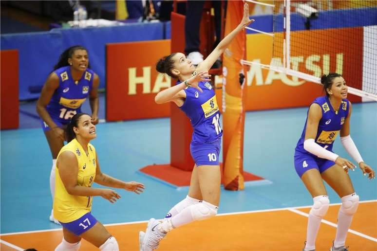 Com a ameaça de um furacão na região a Arena Hamamatsu, no Japão, ficou vazia e pouco torcedores viram o bom desempenho do Brasil. No primeiro set, as comandadas de José Roberto Guimarães demoraram um pouco para engrenar e viram as rivais abrirem vantagem. No entanto, o Brasil passou a encaixar os contra-ataques, passou na frente e fechou o set inicial em 25/15.