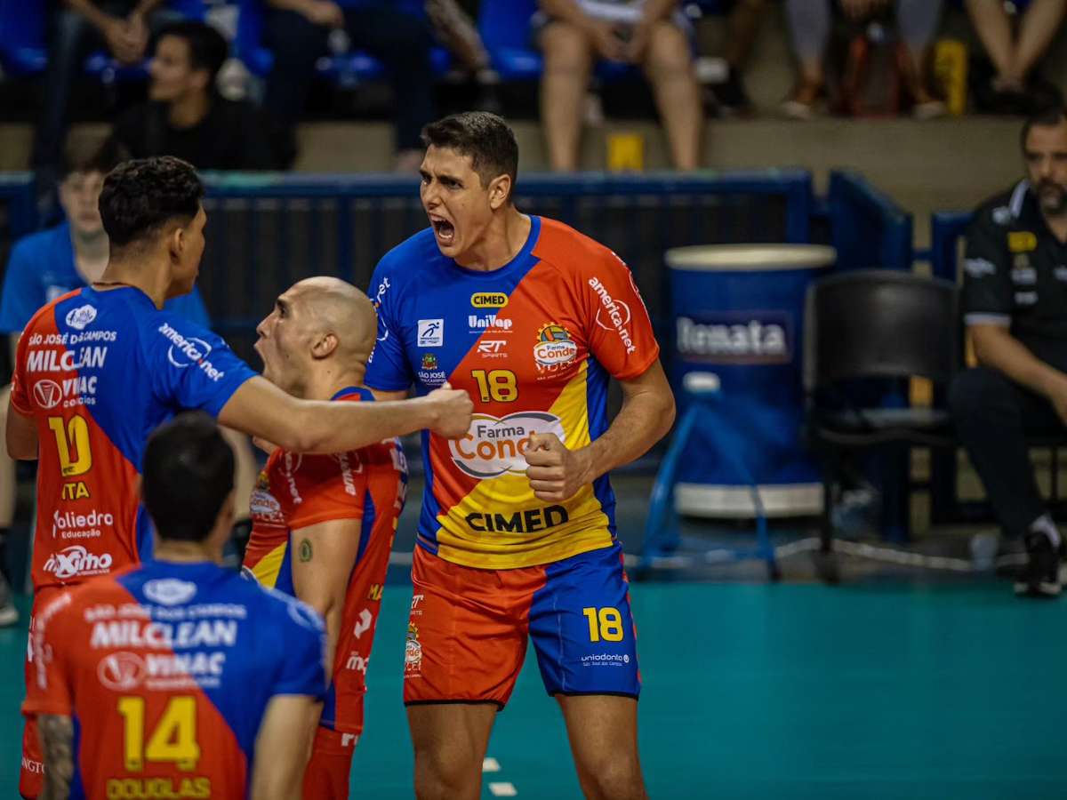 O Farma Conde São José vem ganhando cada vez mais corpo após o título inédito na Supercopa no início desse mês. A dupla de ponteiros formada por Douglas Souza e Ademar consegue segurar bem o jogo e assim dar tranquilidade para Felipe Roque definir as jogadas com o passe na mão do levantador Matheus Brasília.
