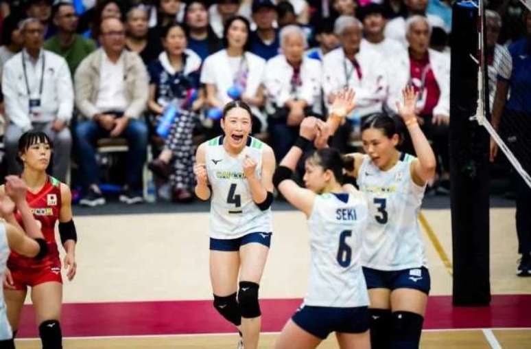 JAPÃO: Seki, Wada, Ishikawa, Sato, Airi, Shimamura e Kojima (líbero). Técnico: Ferhat Akbas.