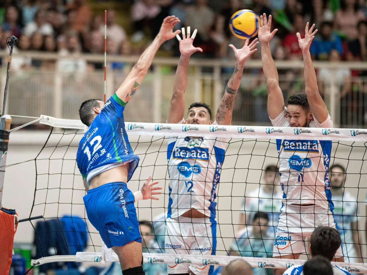 Praia Clube e Vôlei Renata venceram Sesi Bauru e Joinville, respectivamente, neste domingo (13) e seguiram vivos nas quartas de final da Superliga masculina de vôlei