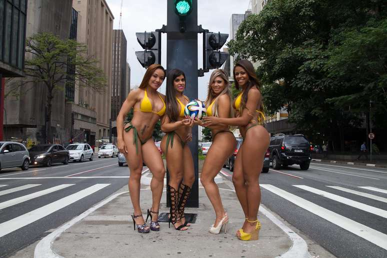 Quatro belas mulheres caminharam de biquíni pela Avenida Paulista nesta terça-feira. Elas são candidatas do concurso "Gata da Copa", e quem ganhar estrelará a capa de junho da revista Sexy