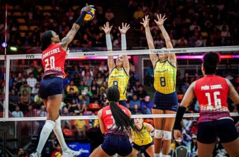 Com o saque funcionando, o block brasileiro apareceu. E aos poucos a República Dominicana foi perdendo suas referências ofensivas. Peña finalizou o duelo com apenas três pontos e 23% de aproveitamento no ataque. Brayelin Martinez terminou com oito e 28% de eficiência.