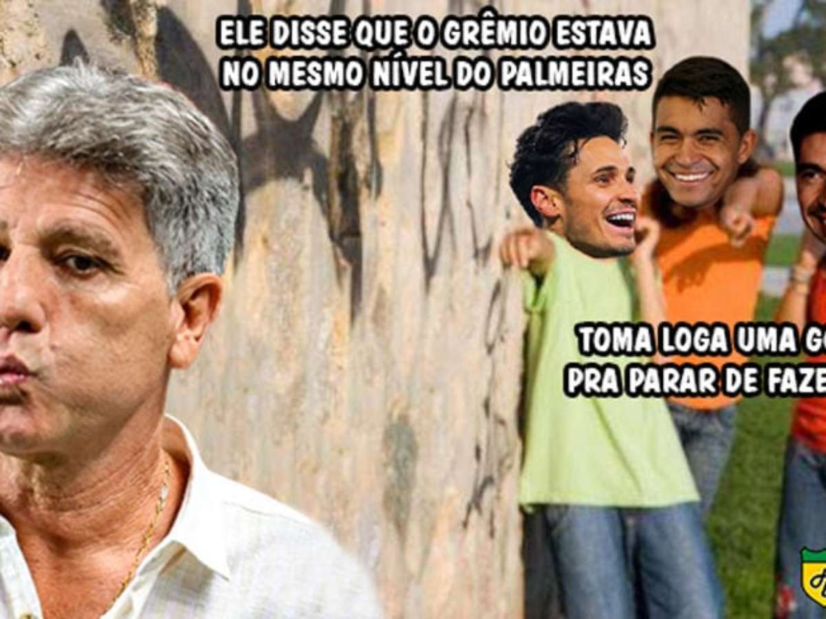 Equipe comandada por Abel Ferreira venceu o Grêmio por 4 a 1 na noite desta quarta-feira, assumiu a liderança provisória do Brasileirão e fez a alegria dos torcedores palmeirenses nas redes sociais. Confira as melhores montagens! (Por Humor Esportivo)