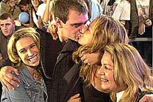 Thyrso beija a namorado ao lado da sogra e da cunhada no final do programa