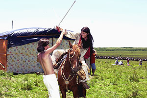 - Giovanna Antonelli (Anita Garibaldi) treina luta com um dublê.