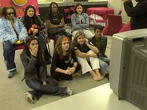 As oito finalistas assistem aos seus melhores momentos no programa Popstars enquanto aguardam a resposta dos jurados.