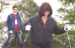 Maria do Carmo, mãe da atriz Fernanda Paes Leme, foi convencida pela filha a esquiar na pista artificial do SKI Mountain Park.