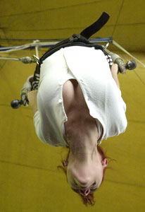 Confiante, Gabriela Alves arriscou uns contorcionismo com sucesso.