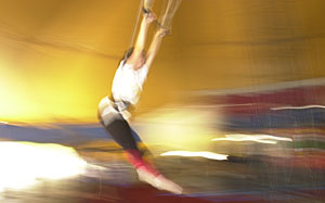 A atriz deu um show no trapézio do