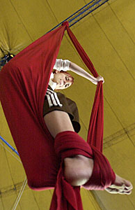 A atriz saiu com os pés doendo de tanto que os enroscou nos tecidos.