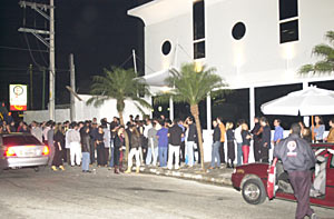 Dezenas de pessoas se aglomeraram em frente à boate para cumprimentar Gianne pelo aniversário.