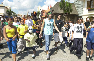 Mion foi ao parque acompanhado do "anão tosco" como é chamado Nestor Bertolino (à esquerda do apresentador) pelo apresentador no programa Descontrole.