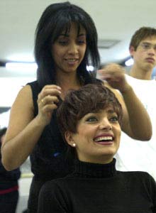 Pensando em mudar o visual, Nani experimenta uma peruca castanha