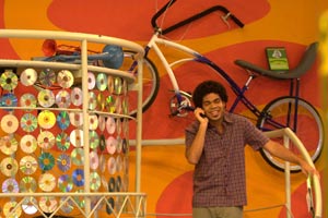 Robson posa perto do pit do DJ no cenário do Zapping Zone