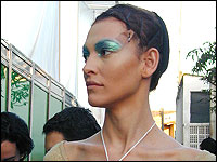 Modelo prepara-se para desfile de Lino Vilaventura |