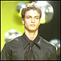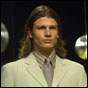No início, o desfile masculino de Fause Haten trouxe ternos bem cortados, em cores neutras como bege, areia e cinza. A inovação ficou por conta dos modernos cintos de strass, usados por fora dos passantes.