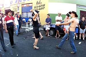 Rodrigo Diogo, de 18 anos, morador de São José dos Campos, laça uma garota para ganhar um beijo, na Rua 43, no centro de Barretos