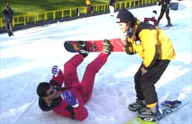 O grande burburinho desta quarta-feira foi, sem dúvida, o Ski Mountain Park, na cidade de São Roque, interior de São Paulo. Conhecida pelas temperaturas baixas e pelos atrativos para quem curte esportes radicais, a cidadezinha reuniu em sua estação de ski um grande punhado de esportistas, empresários, famosos, nem-tão-famosos e os clássicos arroz-de-festa para o lançamento da temporada de inverno da secretaria de Turismo da Argentina. O grande atrativo foi a inauguração de um equipamento que solta neve com a mesma consistência da natural.Os artistas presentes, é claro, aproveitaram a deixa e, logo depois do churrasco oferecido pelo parque, se esbaldaram na pista, onde esquiaram como se realmente estivessem nas montanhas geladas. Cléo Brandão se empolgou tanto com a idéia que não prestou atenção em um pequeno detalhe: "esqueci que estou no Brasil!", disse a apresentadora, "empacotada" em várias cacharréis e um casaco enorme debaixo do sol quente das três da tarde. Mãe cuidadosa, mandou rapidamente o filho Vinícius, que a acompanhava no evento, trocar a blusa que usava por baixo da roupa. Alguns já tinham certa intimidade com o esporte, como Alexandre Frota, conhecido pelo físico de quem gosta de esportes radicais. Apesar disso, o ator não deixou de levar um tombo e tanto. Felipe Folgosi, apesar de dizer que ia "mais passar vergonha do que esquiar", se deu bem na neve e deu várias descidas. A grande maioria, porém, era principiante. O ator veterano John Hebert se disse inseguro: "nunca esquiei!". Depois de duas descidas, ele descreveu a sensação como muito boa, mas que iria ficar por aí mesmo. Já Débora Rodrigues estava empolgadíssima com a experiência nova. "Não resisto a essas coisas", afirmou. Quando vestiu as botas, porém, fez uma reclamação: "como é horrível se locomover com esses skis! E essas botas? Parece que estou usando gesso!". Nada que impedisse a ex-sem-terra de aproveitar a tarde inteira esquiando sem parar. "Adorei!", concluiu.