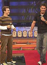 Luciano Huck iniciou nesta segunda-feira (29) a gravação do reality show Acorrentados, que estréia neste sábado (3) no Caldeirão do Huck. O primeiro participante, Bruno Bet, 24 anos, foi atado a seis meninas com as quais conviverá pelos próximos seis dias. As candidatas foram escolhidas por Bruno, que só as conhecia através de cartas e fotos que. São elas: Rebeca, Cristiana, Lídia, Takira, Bruna e Andréia.» Veja as fotos das seis meninas » Veja as fotos da gravação Das seis meninas, Bruno escolheu Takira e Bruna para ficarem ao seu lado. Ao lado de Takira ficaram Cristiana e Rebeca, nesta ordem. Já ao lado de Bruna ficaram Lídia e a gaúcha Andréia. O REALITY SHOW Em Acorrentados, lançado pela emissora holandesa Endemol, um rapaz será atado a seis meninas que estão interessadas nele. Todos ficarão em um hotel, vigiados por câmeras 24 horas por dia e só poderão sair para realizar algumas tarefas. Inseparáveis, eles irão ao cinema, ao restaurante, dormirão juntos, entre outras coisas. Ao final da maratona, o protagonista escolherá uma das seis candidatas para ser sua namorada. Bruno Bet, o primeiro participante, fará declarações diárias sobre suas impressões quanto às meninas. A cada sábado, ele "libertará" uma das "prisioneiras". Bruno pode também alterar a posição das garotas que ficaram (no caso, escolher quais ficarão acorrentadas mais próximas dele). AS ACORRENTADAS