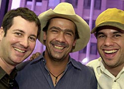 O peão Rodrigo Leonel, vencedor do Big Brother Brasil 2, está sentindo na pele o lado bom e o ruim da fama. Animado com o lançamento do CD Cowboy Rodrigo no Batidão da Viola, que chegou nas lojas nesta segunda-feira (16), ele se apresentará amanhã no Villa Country, em São Paulo, com a dupla Fred & Pedrito, amigos de infância de sua cidade natal, Ribeirão Preto, que participam do novo trabalho recheado de músicas sertanejas.» Veja as fotos Por outro lado, Rodrigo se vê cercado de perguntas sobre o final de seu noivado com Carla, com quem mantém um relacionamento há dois anos, e um suposto envolvimento com Thaís, sua companheira de reality show. "Faz uns dias que eu tô ouvindo essa prosa aí, mas não vou ficar indo atrás para dar satisfação. A Thaís ficou muito amiga minha, mas eu continuo com a Carla", afirmou. A namorada participa do trabalho musical, cantando com Rodrigo na faixa Amo Você, mas não estará nos shows de divulgação do CD. "Ela está estudando para tirar carteirinha daquele negócio de advogado, como é, OAB né? Então, não vou pedir para ela parar a vida e me acompanhar nos shows", falou o caubói com seu jeito espontâneo. O ganhador dos R$ 500 mil continua com o sonho de ter seu hotel de cavalos, mas ainda não definiu o local, segundo ele, por falta de tempo. Agora os esforços estão concentrados na divulgação do disco sertanejo, embora Rodrigo afirme que não pretende seguir a carreira de cantor: "Não tive preparação para fazer o CD, foi na raça mesmo. A gente já estava acostumado a cantar de brincadeira, foi muito gostoso trabalhar com amigos. Só vou fazer aula de canto para melhorar um 'caduquinho'." Sobre os amigos que ficaram do BBB, Rodrigo destaca Thaís, Tarciana, Moisés e Fabrício. Inclusive Pedrito aproveitou para desmentir os boatos de que estaria namorando com Tarciana: "É o mesmo caso da Thaís e do Rodrigo. Ficamos muito amigos e por isso o pessoal já acha que tem algo a mais". Rodrigo explicou como surgiu o seu bordão "firma daí, que eu firmo daqui" com uma autêntica história de interior: "Lá em Ribeirão tem o bar do Zedu, onde sempre tinha um cara meio 'pingado', que gostava de uma cachaça. Na outra esquina tem um posto de gasolina, e toda vez que o bêbado via passar um conhecido lá ele gritava 'firma daí que eu firmo daqui'. A gente achou engraçado e começou a copiar, daí pegou". O caubói lembrou que entrou no programa apenas pelo dinheiro: "Não é fácil uma filha sua pedir um presente e você não ter a 'prata' para dar", contou ele que é pai de dois filhos, e opinou sobre o ensaio da ex-BBB Manuela na revista Playboy deste mês. "Ficou bonito, não está escancarado. E ela usou um chapéu igual ao meu, vocês viram? O Thyrso é quem não deve ter gostado. Quando eu encontrar com ele vou brincar pra ver a reação dele", provocou bem-humorado. E se fosse a Carla na revista? O peão jura que não teria ciúmes: "Não sou um cara possessivo. Se ela quisesse sair ia dar a maior força. E se alguém falasse que ela era gostosa, eu ainda respondia 'é gostosa mais é minha viu'?"
