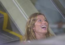 Mas a segurança toda não impediu que Gisele tomasse um tombo com sacolas e tudo durante a gravação de uma cena. Ela estava descendo uma escada rolante, no quinto take do comercial, quando se desequilibrou e caiu no chão. Rapidamente, e com a classe que lhe é peculiar, a modelo levantou-se sorrindo.