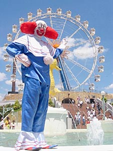 O palhaço gravou nesta sexta cenas no parque de diversões Hopi Hari, em Vinhedo, São Paulo.