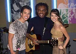 O cantor Gilberto Gil gravou ontem, 12, sua participação no seriado Sandy & Junior. No episódio A Megera Contra Ataca, Gil vai interpretar ele mesmo.» Veja as fotos de Gilberto Gil durante a gravação Júnior resolve dar uma força ao amigo Café (Ivan de Almeida), que foi demitido por Dona Marlene (Carme Lu Mendonça), contratando-o para trabalhar no estúdio. Gilberto Gil aparece para gravar e reconhece o antigo zelador do condomínio, da época em que ele era Paulo Café, o trompete de ouro da noite. Gil ficou totalmente à vontade nas gravações e improvisou bastante. Nos bastidores, o cantor ficou tocando violão com Júnior. Os dois tocaram juntos "Esperando na janela". Todo o elenco, equipe técnica e inclusive Noely e Xororó caíram na tietagem e tiraram fotos com o cantor. O episódio deverá ir ao ar no dia 15 de dezembro.