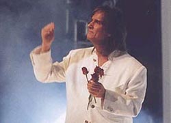 Roberto Carlos apresentou ontem, em São Paulo, o show Amor sem limite para cerca de três mil pessoas, que será exibido no próximo dia 18, após a novela Esperança, na TV Globo, como parte do Especial Roberto Carlos 2002.» Confira as fotos do show O Rei cantou 16 músicas que retratam momentos de sua vida com romantismo, religiosidade e amor. "Quanto duas pessoas se amam de verdade, são as almas que se amam", falou. Entre as canções estavam Emoções, Como é grande o meu amor por você, Amor perfeito, Detalhes, Parei na contra-mão, Além do Horizonte, É Preciso saber viver, Força Estranha e Jesus Cristo. No final da apresentação, Roberto Carlos lembrou da mulher Maria Rita, que morreu de câncer, e entregou rosas brancas e vermelhas para o público. Leia mais: » Ana Maria Braga prestigia show de Roberto Carlos