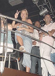 » Confira as fotos da festa!A apresentadora Adriane Galisteu e a modelo Adriana Lima, noiva do roqueiro Lenny Kravitz, ainda curtem a Bahia após a festa do réveillon. As beldades se divertiram no ensaio dos Mascarados, com Margareth Menezes, ontem à noite (3), no Rock in Rio Café de Salvador. Ambas passaram a virada do ano sem a companhia do namorado e noivo. O diretor da Band Rogério Gallo, namorado da apresentadora do É Show, esteve em outra cidade da Bahia ao lado da filha. Também marcaram presença no ensaio dos Mascarados Astrid Fontenelle acompanhada do namorado Marcelo Checon, Deborah Lanm, o estilista Fausen Haten, o músico Compadre Washington, Alicinha Cavalcante, o cantor Ricardo Chaves, entre outros famosos.