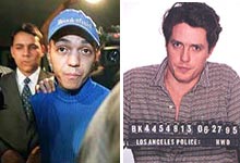 Belo e Hugh Grant quando foram presos Fotos: AJB e Reprodução