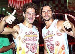 Os atores Nuno Lopes e Murilo Rosa na quadra do Salgueiro