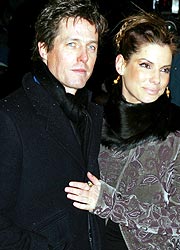 Grant, 42 anos, e Sandra, 38, deram risada e não responderam diretamente quando os jornalistas lhes perguntaram se a atração entre eles passou para a vida real durante as filmagens da comédia romântica.