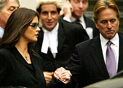 Catherine Zeta Jones e o marido, Michael Douglas, no tribunal