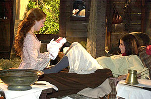 » Veja fotos das gravaçõesForam gravadas no final da semana passada as cenas do nascimento do filho de Anita (Giovanna Antonelli) e Giuseppe Garibaldi (Thiago Lacerda), em A Casa das Sete Mulheres. O bebê, que recebe o nome de Menotti, vem ao mundo pelas mãos de Manuela (Camila Morgado), eterna apaixonada de Garibaldi. As cenas, dirigidas por Jayme Monjardim, foram tão emocionates que levaram às lágrimas os presentes. Todos também encheram de mimos o bebê Márcio Mathias dos Santos, que fez o pequeno Menotti. Prevista para ir ao ar no dia 26, a cena tem como continuação a visita de Marcelino (Creo Kellab), Batista (Carmo Dalla Vecchia) e Lorenzo (Juliano Righetto). Os três fizeram as vezes de "reis magos": Marcelino prometeu fazer uma canja para alimentar Anita para que ela tenha bastante leite para o bebê; e Lorenzo prometeu construir um berço para Menotti.